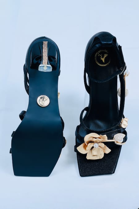 Buy_Sana K luxurious Footwear_Black Pearls, Diamonds La Floral Embellished Heels