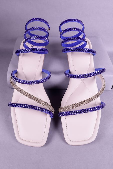Blue Rhinestone Embellished Wrap Flats