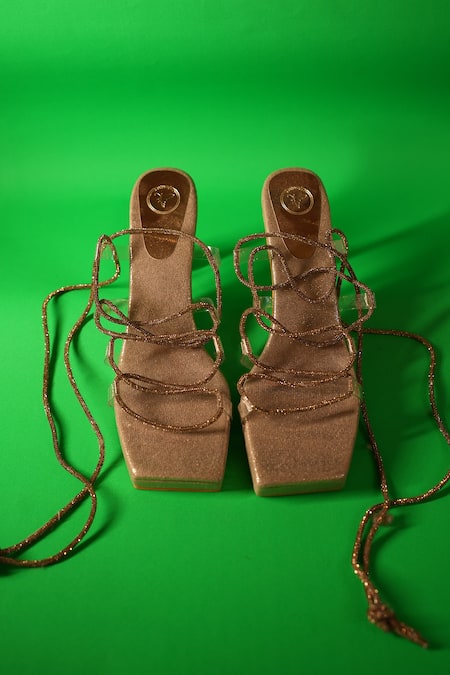 Gold Stones String Embellished Strapped Heels