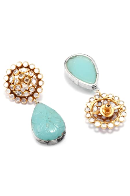 Blue stone embellished tear drop shaped earrings featuring a handcrafted design