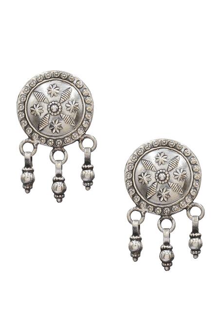 Silver Plated Cut Work Carved Circular Dangler Earrings
