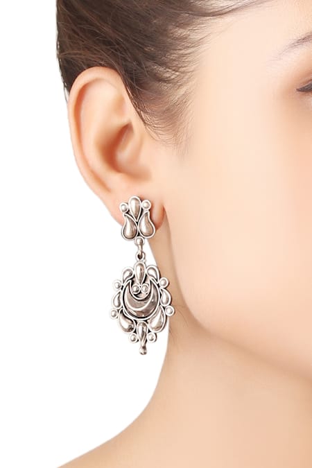 Silver Plated Embroidery Carved Danglers