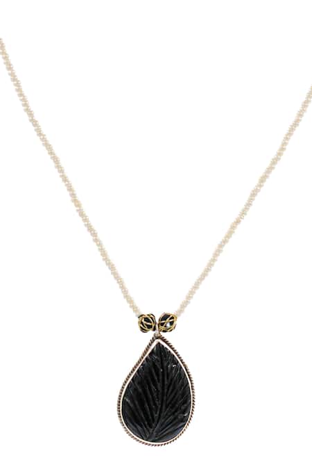 Amirah leaf onyx embellishment, S hook closure for secure fit, Intricate detailing on the onyx pendant