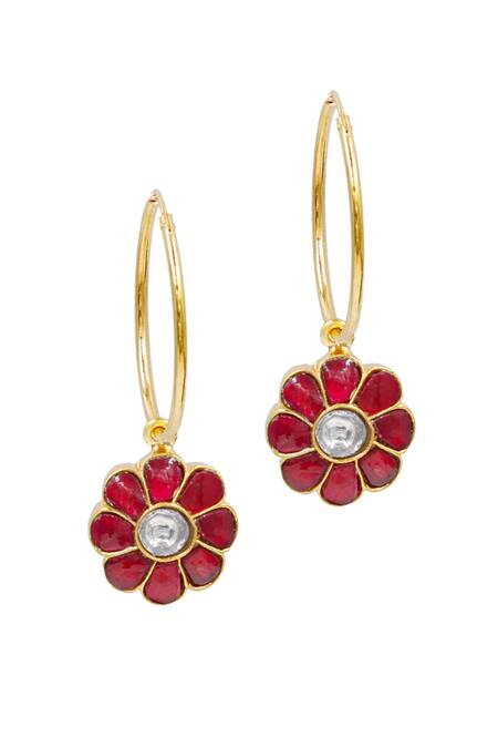 Red stone embellishments on floral design, Gold polished finish, Lightweight design at 11.25 gms