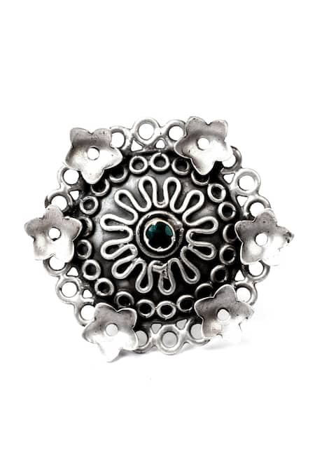 Buy_Sangeeta Boochra_Silver Plated Stones Floral Motif Cutwork Ring _Online_at_Aza_Fashions