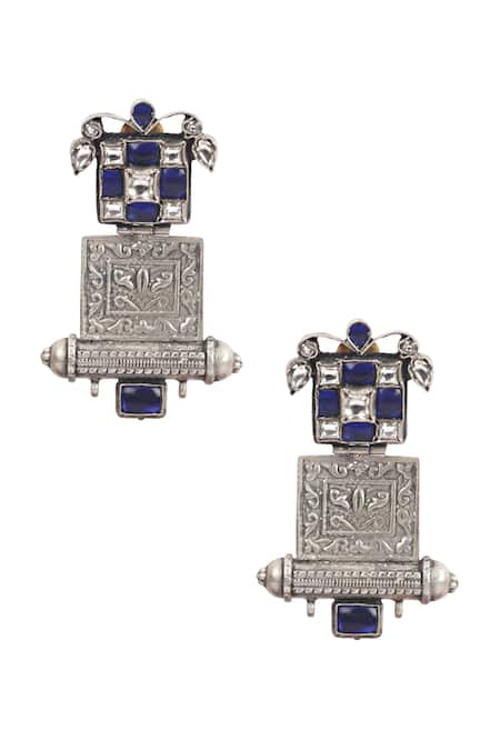 Buy_Sangeeta Boochra_Silver Plated Cut Work Geoemtric Motif Danglers _at_Aza_Fashions