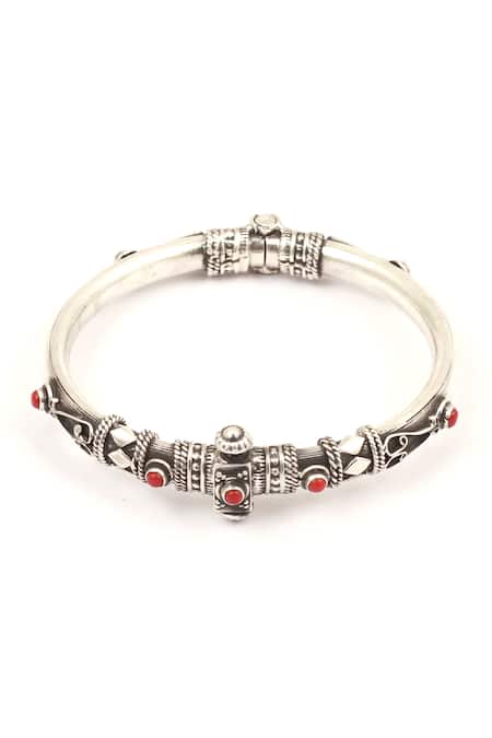 Silver Plated Stones Handcrafted Carved Bracelet