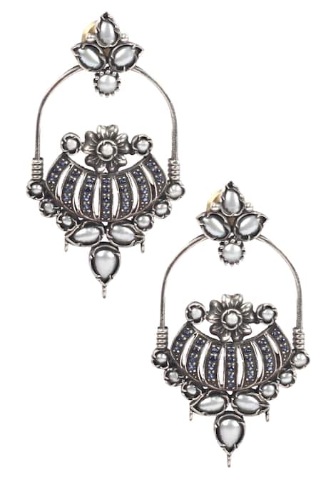 Buy_Sangeeta Boochra_Silver Plated Stones Handcrafted Dangler Earrings _Online_at_Aza_Fashions