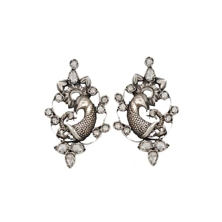 Handcrafted silver stud earrings featuring intricate Kundan stone embellishments