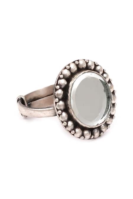 Round top with mirror embellishment, Carved hem details, Adjustable band for comfort