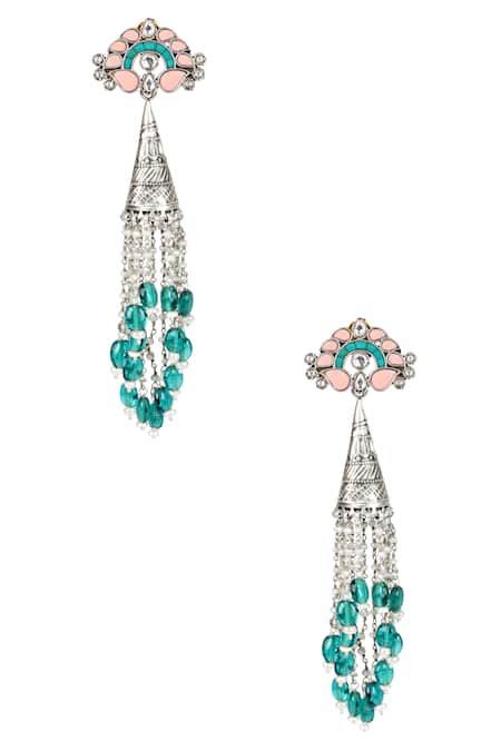 Buy_Sangeeta Boochra_Silver Plated Pearls, Stones Handcrafted Tassel Long Jhumkas _at_Aza_Fashions
