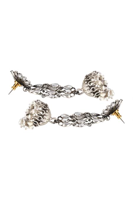 Buy_Sangeeta Boochra_Silver Plated Stones, Beads Handmade Floral Jhumkas _Online_at_Aza_Fashions