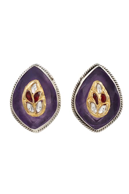 Purple leaflet stud earrings crafted from 925 sterling silver featuring hydro embellishments. Designed with a push-back closure for secure wear.