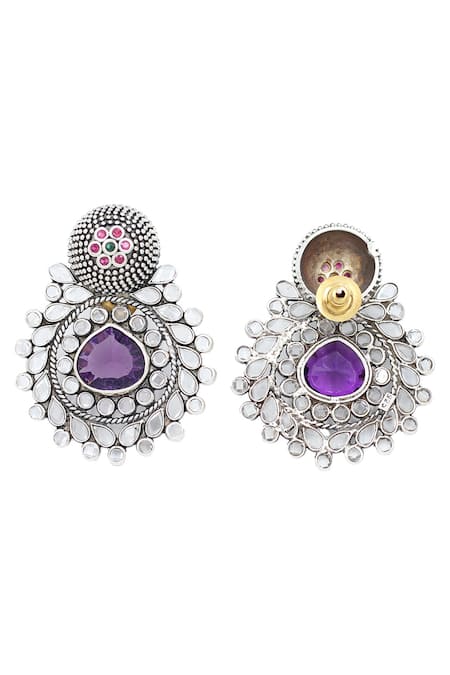 Intricate silver filigree work, Hydro gemstone in teardrop shape, Colorful enamel detailing on top
