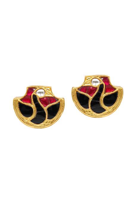 Kundan embellishments on a gold plated base, Unique design with color contrast, Push back closure for secure fit
