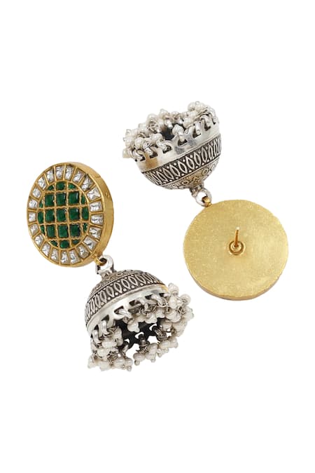 Green Kundan Silver Designer Earrings