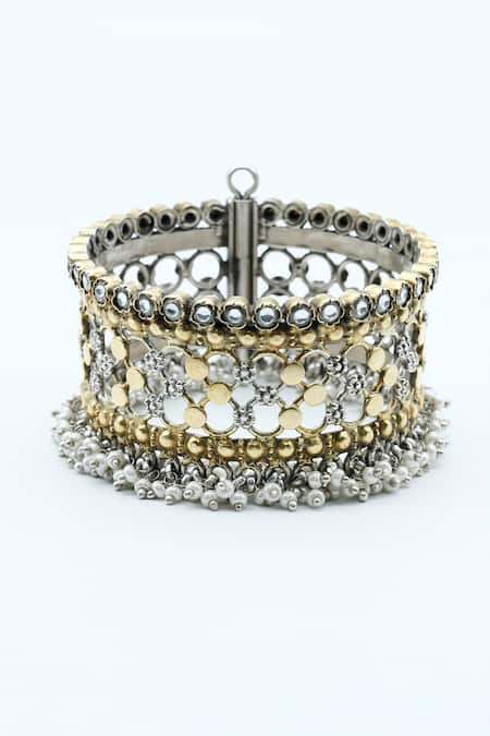 Silver bracelet featuring pearl embellishments with a Mughal pattern and cutwork detailing