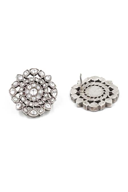 Silver Plated Diamonds, Stones Olivia Fern Petal Kundan Studs