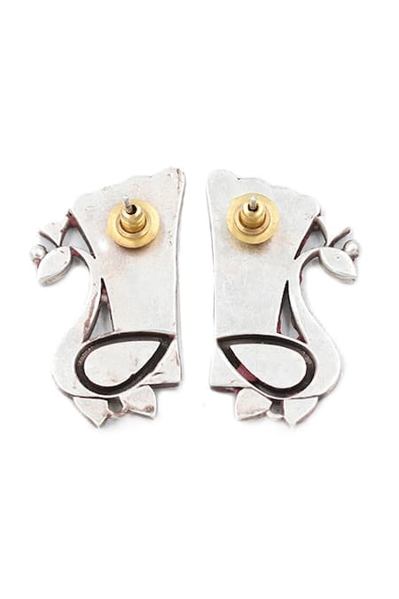 Silver toned peacock carved earrings featuring turquoise stone embellishments