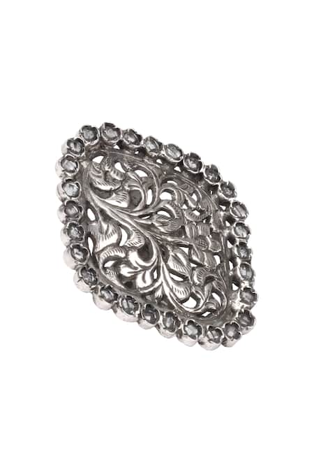 Silver Plated Stones Ritisha Floral Carved Ring