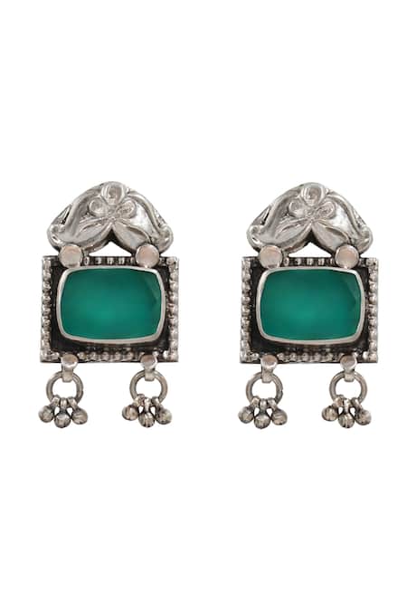 Green hydro stone earrings featuring floral and geometric patterns