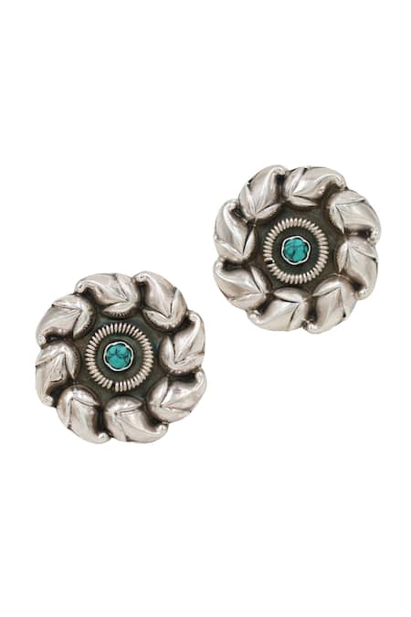Silver toned bloom swerve studs featuring turquoise stone embellishments