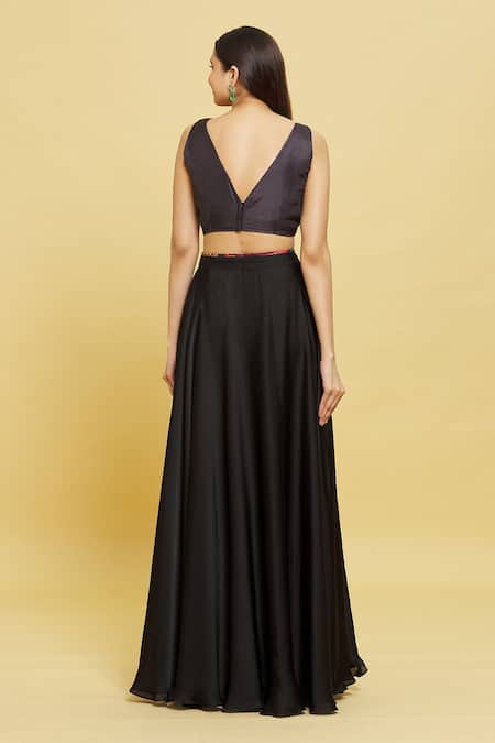 Black Printed Forest Patterns V Neck Bouse Lehenga Set
