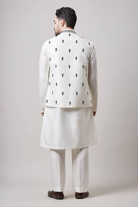 Ivory Cotton, Silk Embroidery Bundi Kurta Set