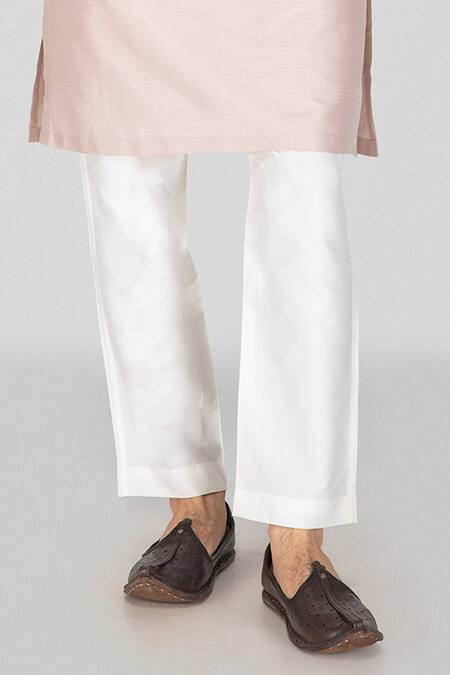 Pink kurta featuring thread embroidered geometric patterns on the placket. Paired with matching pants for a complete look.