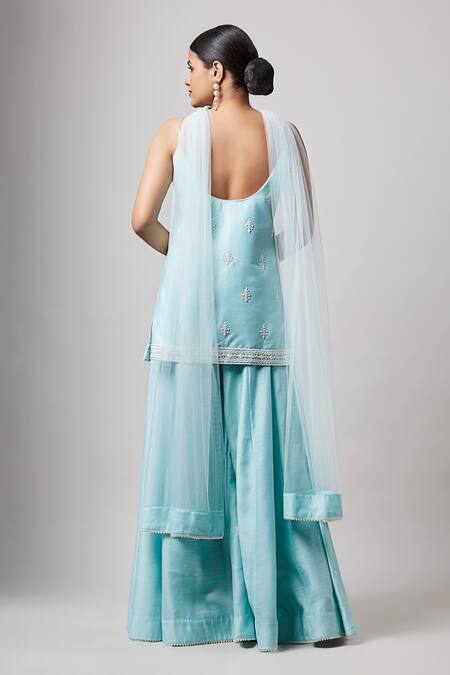 Kurta: 29 inches, Sharara: 44 inches, Model height: 5ft 7inches, wearing size M