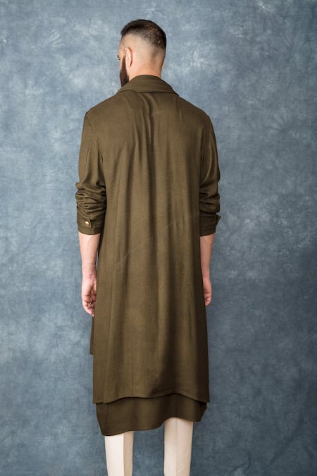 Green Moss Crepe, Cotton Suiting Draped Kurta Set