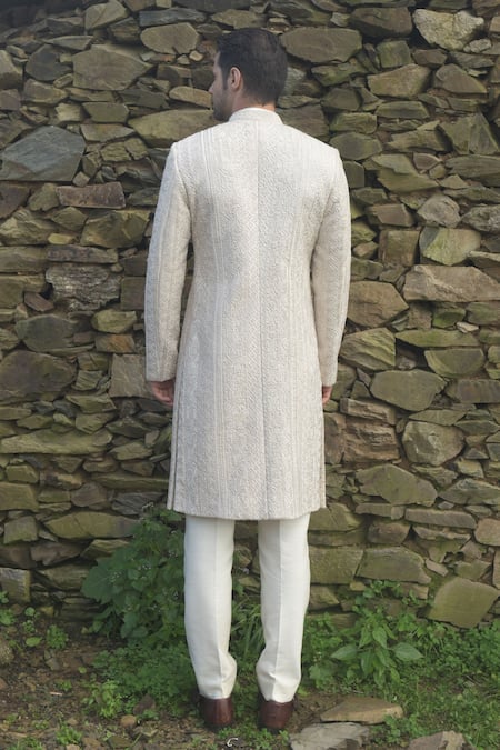 Buy_Sarab Khanijou_White Organza And Cotton Silk Thread Embroidery & Sequin Sherwani & Kurta Set _Online_at_Aza_Fashions