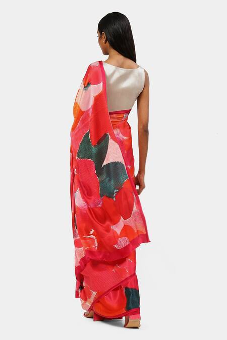 Pink Georgette, Satin Burst Floral Print Saree