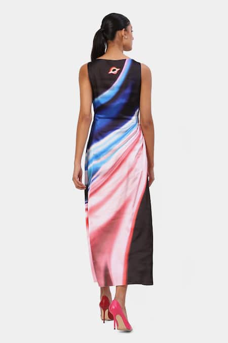Multi color maxi dress featuring an all-over haze print and boat neck design