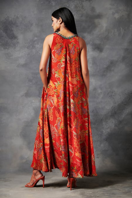 Red Darkha Marine Plant Print Jumpsuit