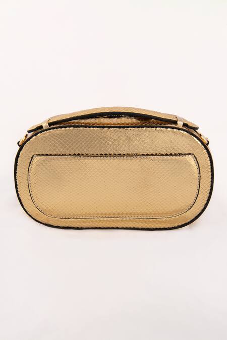 24k gold plated brooch detail, Textured pattern finish, Detachable sling strap