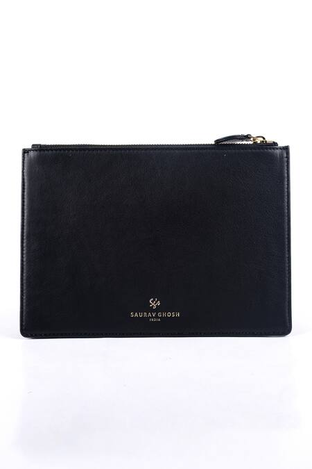 Black Embroidery, Chains Captial Embellished Clutch Bag