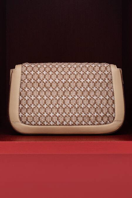 Beige Embroidery, Brooches Carry All Saddle Thread Work Clutch