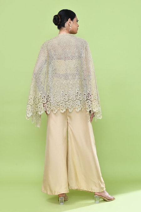 Buy_Sayisha_Beige Silk Open , Sweetheart Cutwork Cape And Pant Set
