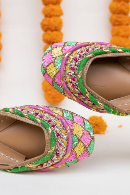 Multi Color Embroidered Scalloped Sequin Work Juttis
