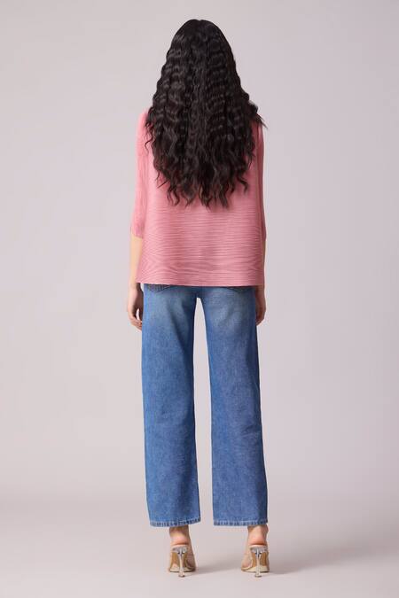 Pink Polyester Pearls Collared Maise Work Shirt
