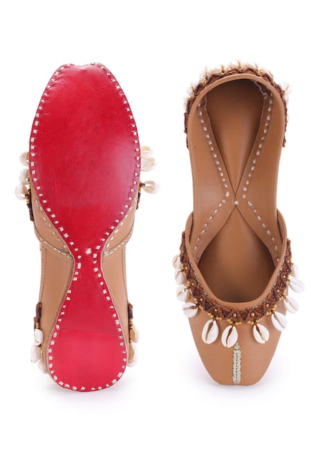 Brown Embellished Sea Shell Tassel Juttis