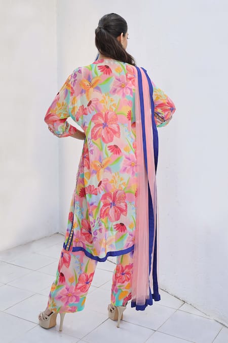 Multi Color Georgette Printed And Hand Embroidered Floral Amira Tunic Pant Set