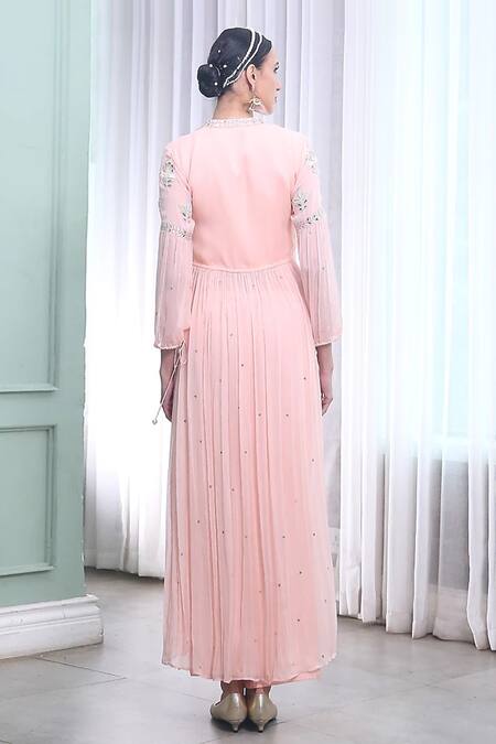 Pink Georgette Embroidered Bead Work Mandarin Collar Chloe Kurta And Palazzo Set