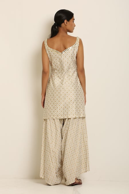 Buy_Seema Nanda_White Cotton Mul Sweetheart Neck Chanderi Silk Kurta And Dhoti Pant Set  _Online_at_Aza_Fashions
