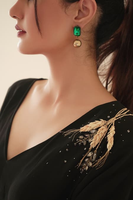 Buy_Seesa_Black Cotton Crystals V-neck Celeste Placement Embroidered Top _at_Aza_Fashions