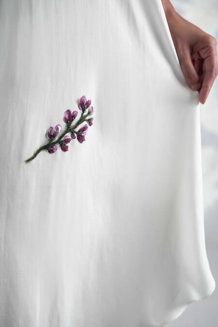 White Viscose, Georgette Ilana Asymmetric Hand Painted Applique Kaftan