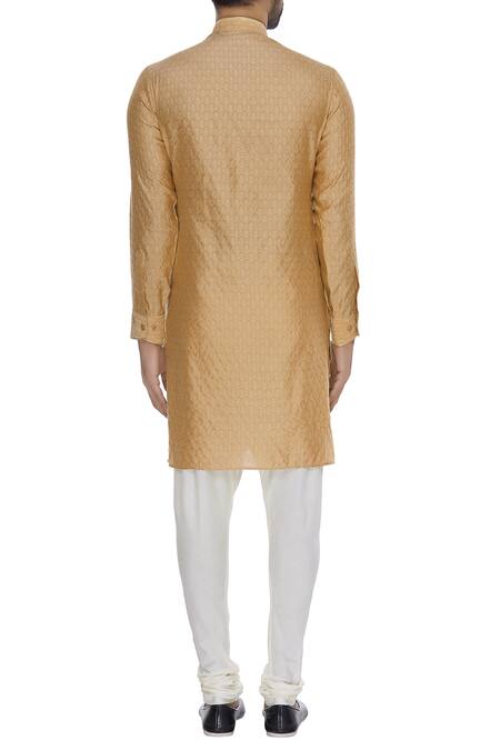 We hear you when you want opulence & bling at the same time! This gold kurta in cotton silk fabric detailed with self embossed patterns.