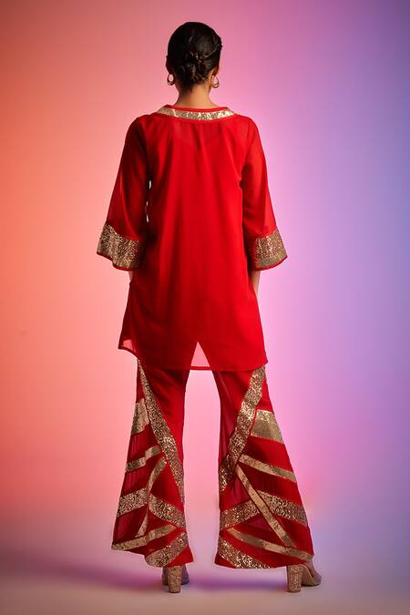 Buy_Gulabo By Abu Sandeep_Red Sequin Embellished Bell Bottom Pant _at_Aza_Fashions