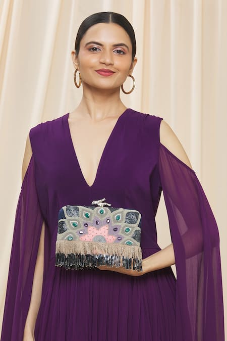 Detachable sling belt for versatile use, Intricate bead and sequin detailing, Semi-waterproof material for durability